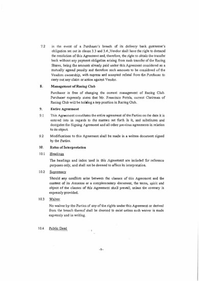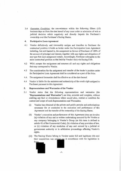 Ello no hace más que demostrar lo que el Dictamen de la Comisión de Investigación calificó como una falta de "mínima diligencia", sumado a que los informes de solvencia solicitados a Credit Suisse para avalar la operación hacían referencia a la empresa WGA, cuando el contrato de compraventa fue efectivamente suscrito con la recién constituida y sin activos WGA Sport.