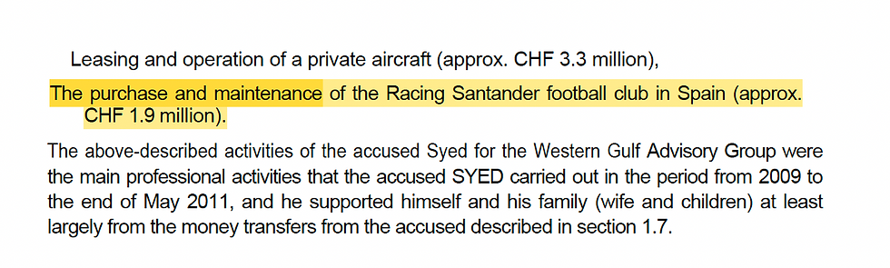 Su puerta de entrada al deporte rey fue con la frustrada compra del Blackburn Rovers, a lo que también consiguió sacarle partido. En sus reuniones en Baréin, Syed informaba a los potenciales clientes de que estaba en proceso de comprar el club para proyectar una imagen de empresario global exitoso. Esta investigación ha tenido también acceso a correos electrónicos de intermediarios, que resaltaban este interés para validar la seriedad de Syed. Finalmente, no desembarcó en la Premier, pero con la sociedad holandesa Western Gulf Advisory Sports Holding, B.V. sí logró la ansiada propiedad de un club de fútbol con la entrada en el Racing, un período sobre el que el racinguismo sigue esperando respuestas.